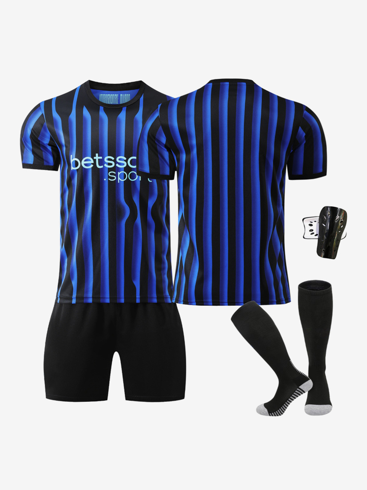 25/26 Heimtrikot-Set für Fußballvereine 4-teilig personalisierbar Kurzarm blau-schwarz gestreift