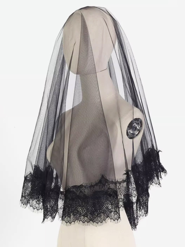 Vintage gotischer Hochzeitsschleier aus schwarzer Spitze gotischer einstufiger Kathedralenschleier
