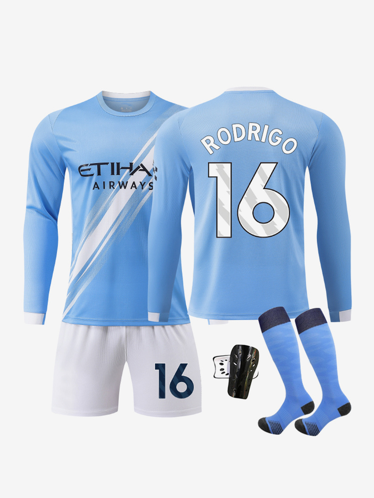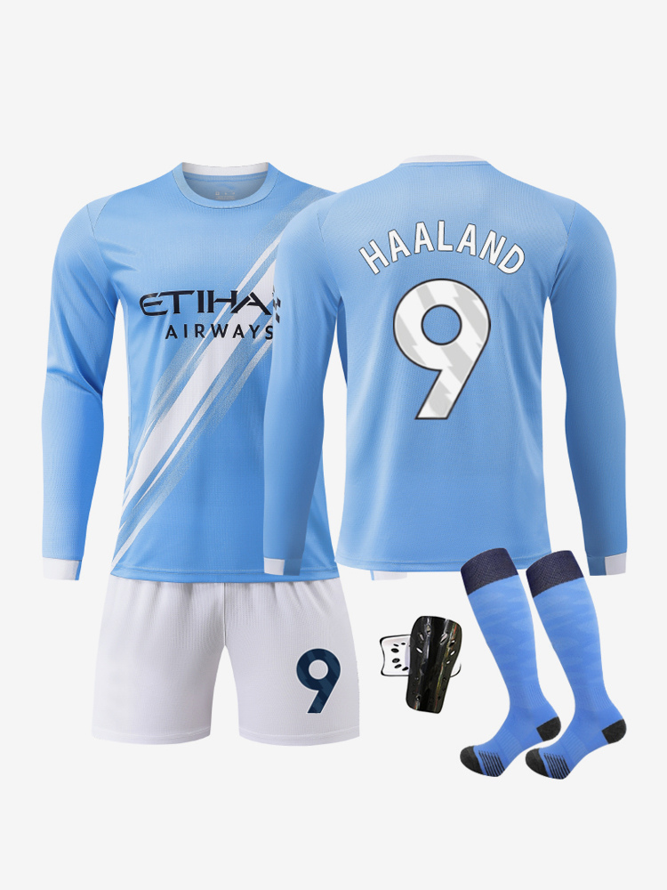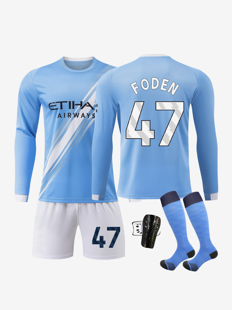 Conjunto de 4 piezas de camiseta de fútbol local de manga larga n.° 9 Haaland y n.° 47 Foden (25/26)