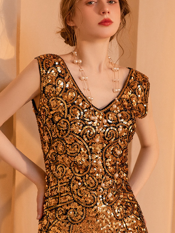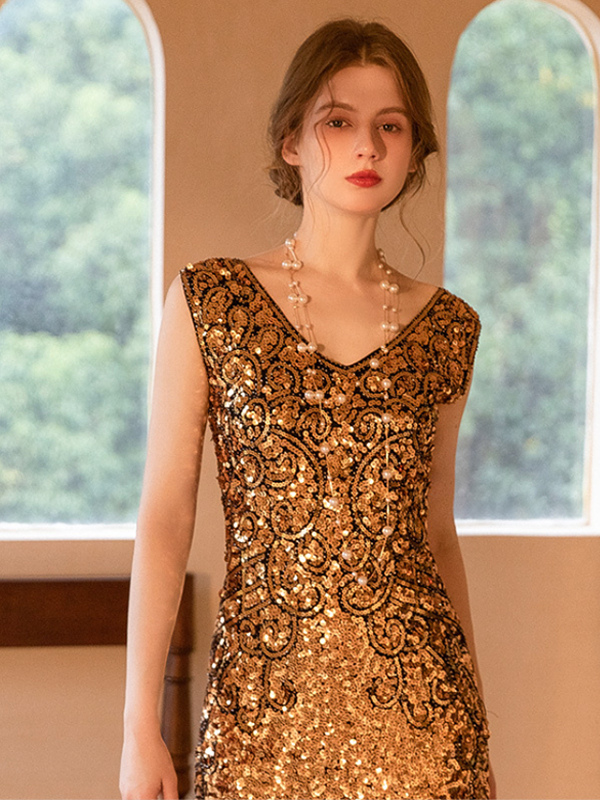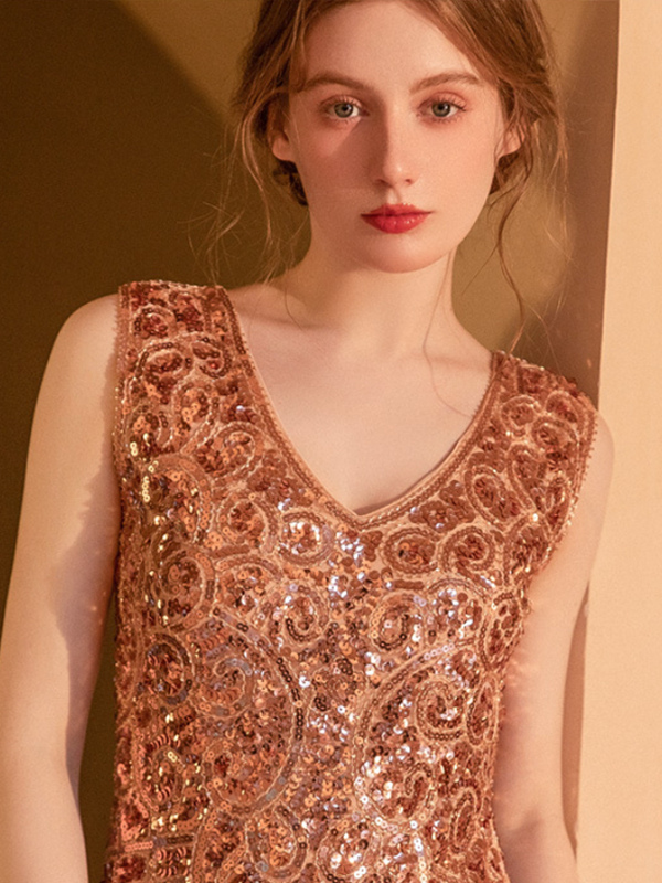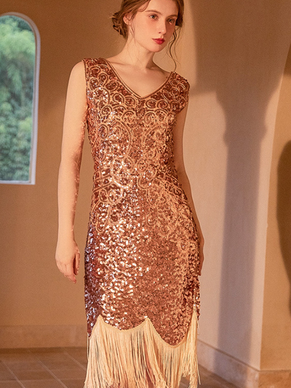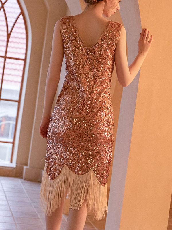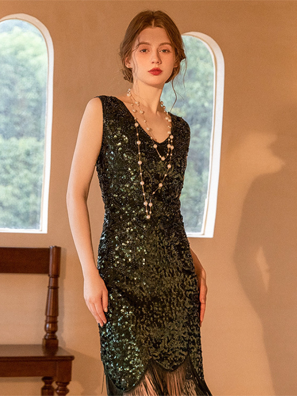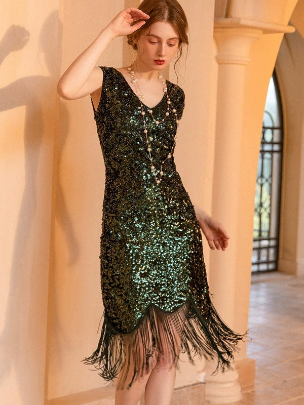 Vestido clásico estilo flapper del siglo XX sin mangas con flecos estilo retro de los años 20 para mujer.