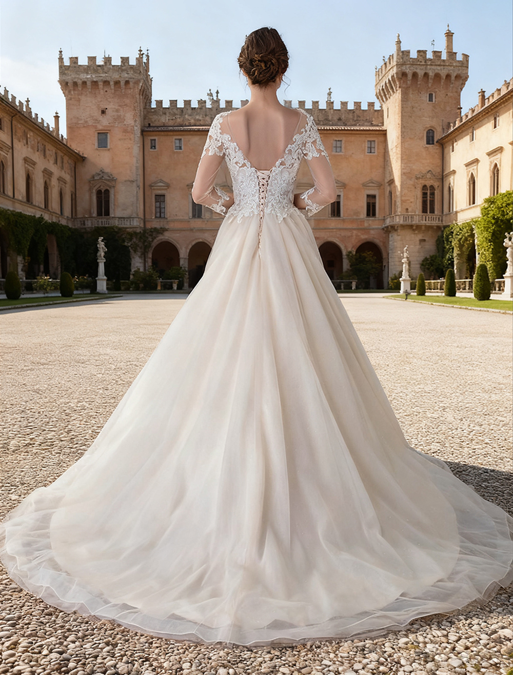 | Lunghezza/strascico | Strascico da cappella | Collo | Scollo a barchetta |