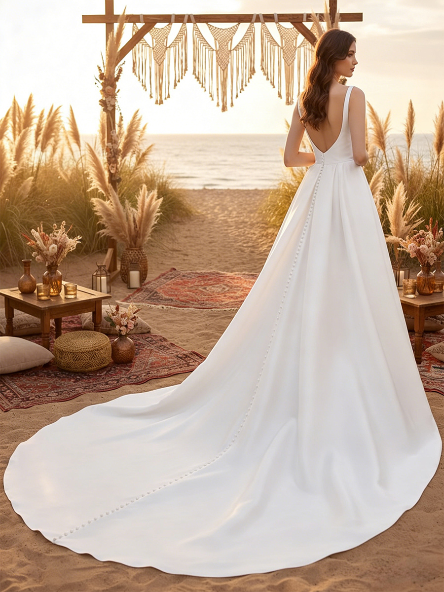 | Sleeve Length | Sleeveless | Back Details | Backless, Zipper, Wedding Dress Functional Buttons |