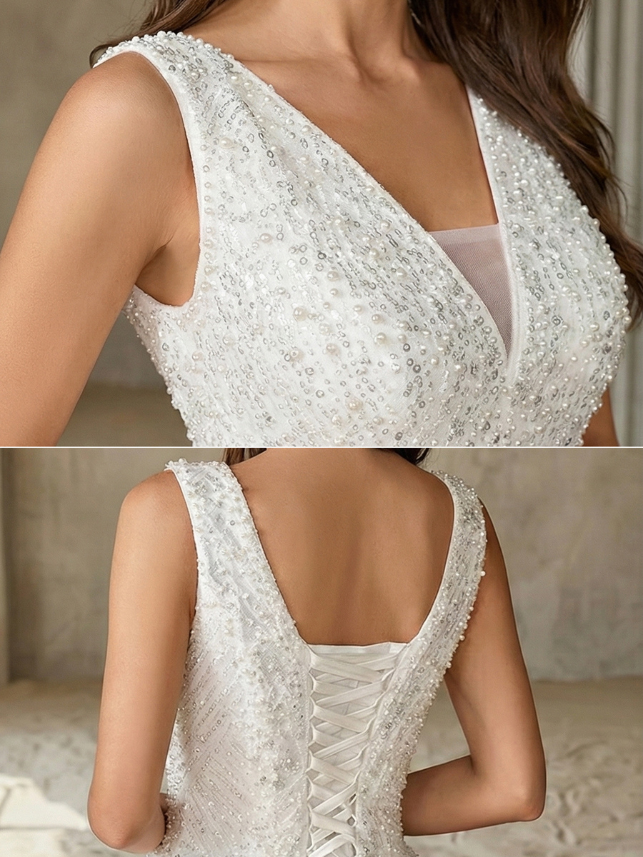 | Hemline/Train | With Train | Neckline | V-neck |